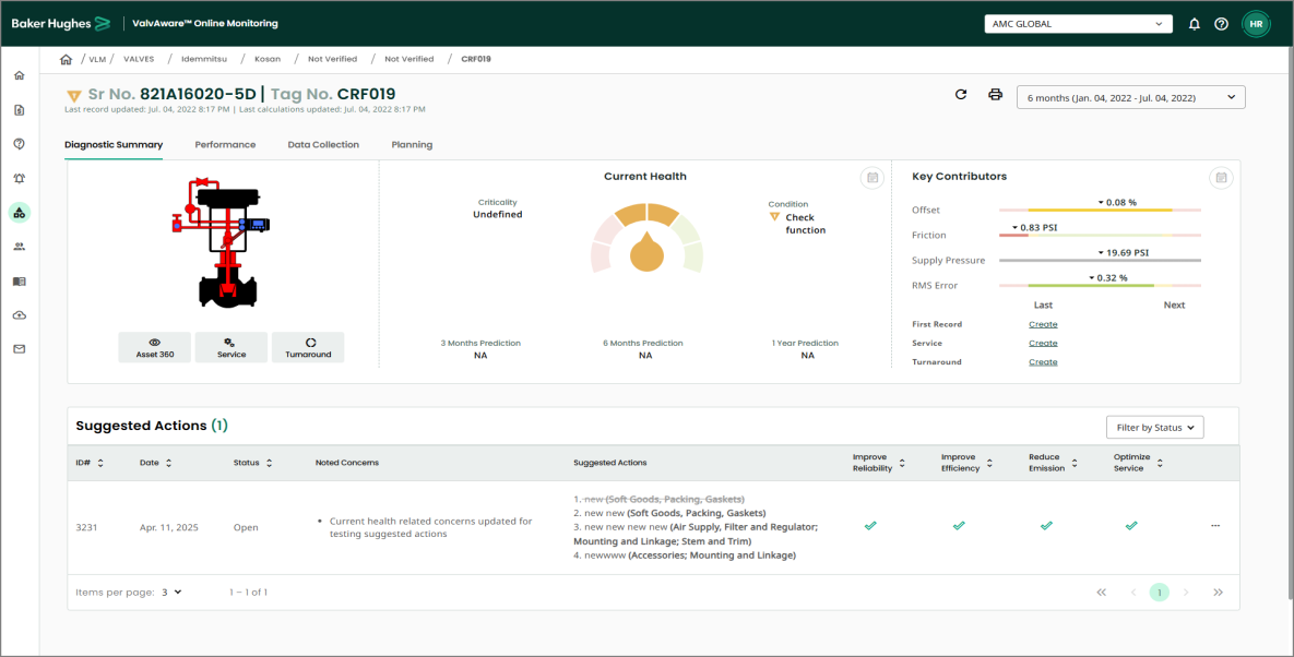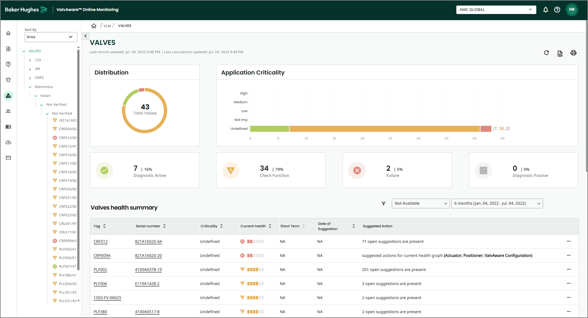 The ValvAware Online Monitoring tool lets you monitor and diagnose the health of the valve.
