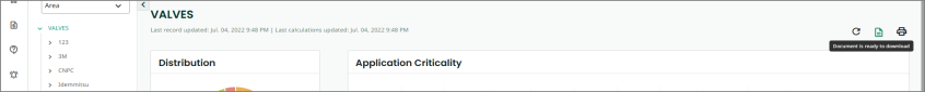 When you select a date range for a particular customer, say 3 months for customer A, the corresponding data for 3 months displays under the Valve Health Summary section.